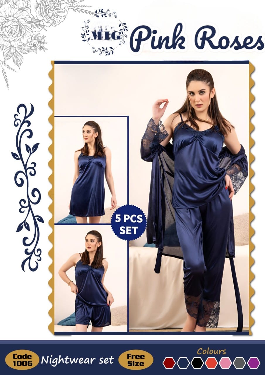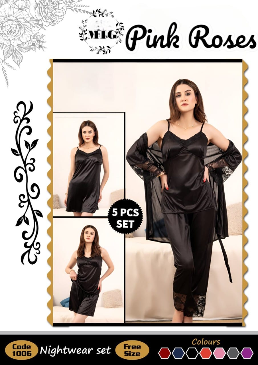 5 PCS BIRDAL NIGHT SUIT NIGHTWEAR FOR WOMEN & GIRLS -- IMPORTANT SILK GSM USE -- PACK OF 5 PIECE NIGHTY INNER+GOWN+TROUSER+SHORT & BREAST SIZE EASILY WEAR -- WOMENS & GIRLS